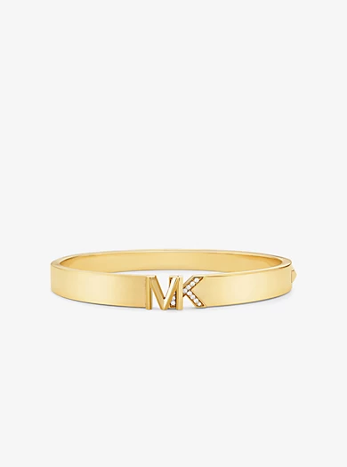 This bangle is sleek yet striking all at once. It’s crafted from 14K gold-plated brass and centered with our pavé-encrusted logo initials. The hinged closure ensures you can get it on and off with ease.• Bangle