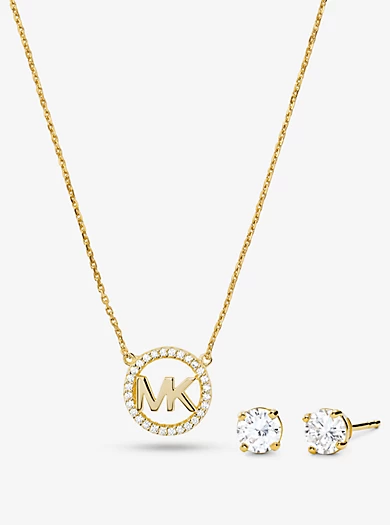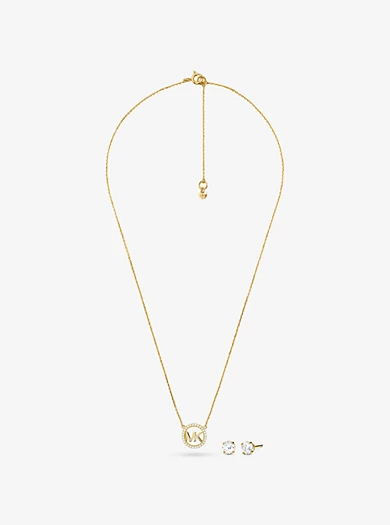 Elegant on their own—even better together. This jewelry set comes complete with a pavé logo charm necklace and stud earrings, both crafted from 14K rose gold-plated sterling silver. It’s the quickest way to add sparkle to any look.• Necklace and earrings set