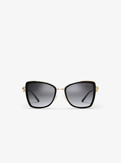 Our Corsica sunglasses channel the ease of jet-set cool, with oversized square lenses and a gleaming metallic frame. A subtle logo charm finishes the look with inherent glamour.• Butterfly sunglasses