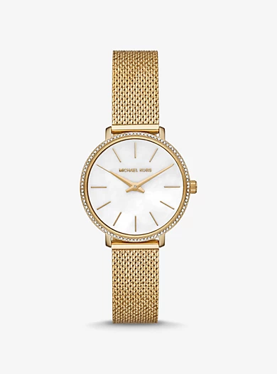 Our Pyper watch is the definition of everyday elegance. Designed with a timeless mesh strap, this gold-tone style features pavé accents and an iridescent mother-of-pearl watch face. Wear it solo or stack it with gleaming bangles for a glamorous effect.• Mini watch