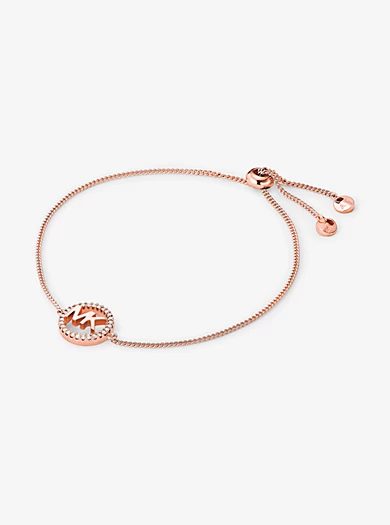 A luxe update to your jewelry box, this slider bracelet is anchored by our logo initials and outlined in pavé accents for a glamorous finish. It’s crafted from sterling silver and available in three high-shine platings: 14K gold, 14K rose gold and rhodium.• Slider bracelet