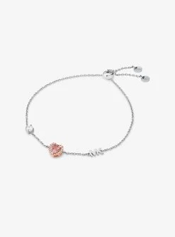 This slider bracelet is delicate enough to be worn daily and perfect for stacking with similar styles already in your jewelry box. Crafted from precious metal-plated sterling silver, it features a faceted heart outlined with sparkling pavé accents, a gleaming cubic zirconia stud and our initials for a finishing signature twist.• Slider bracelet