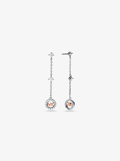 Meticulously crafted from sterling silver, these delicate drop earrings feature chain links illuminated by cubic zirconia stones and descend to showcase our two-tone logo charm outlined in a halo of sparkling pavé. Their graceful movement makes them ideal for nights on the town.• Drop earrings