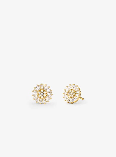 Perfect for daily wear, these sparkling stud earrings channel a refined glamour. Crafted from sterling silver and available in three luxe platings, this elegant pair features a pavé center that’s surrounded by tapered accents. Wear yours with everything from office-ready separates to evening ensembles.• Stud earrings