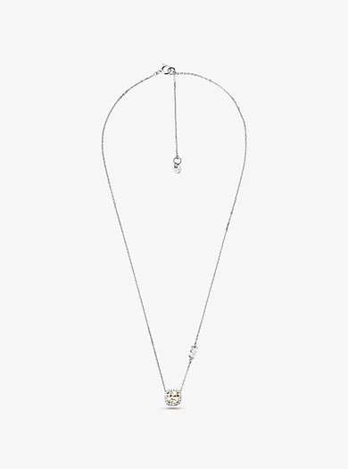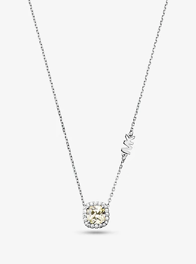 Crafted from sterling silver and finished with a high-shine rhodium plating, this cushion cut pendant will add a glamorous touch to myriad ensembles. A vibrant center stone is surrounded by sparkling pavé accents, while our logo initials lend a novelty twist. Wear it alone or layered with complementary styles.• Necklace