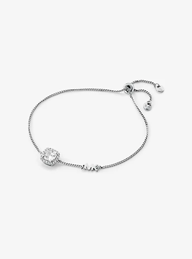 Elegant yet understated, this slider bracelet is destined for daily wear. Crafted from rhodium-plated sterling silver, it features a bold cushion-cut stone outlined with shimmering pavé accents and our logo initials for a signature twist.• Slider bracelet