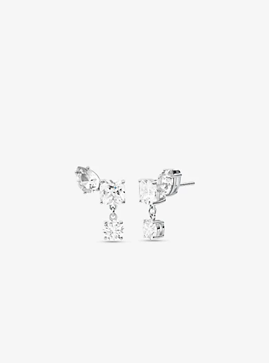 The classic stud, redefined. Featuring a trio of luminous cubic zirconia stones, this sterling silver pair is designed in a drop earring silhouette for a contemporary yet feminine finish. Wear them with the matching necklace during your next night on the town.• Earrings