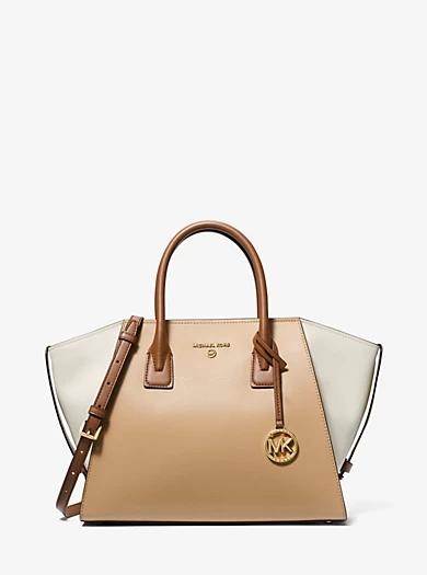 Equally versatile and sophisticated, the Avril satchel is a must-have addition to your handbag lineup. Crafted from supple pebbled leather with a color-blocked finish, this design is rendered in a standout silhouette that features a detachable crossbody strap and opens to a pocketed interior. It’s the perfect complement to office-ready looks and casual weekend wear alike.• Satchel