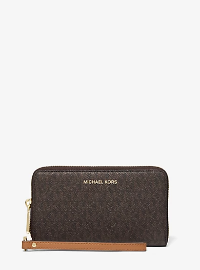 Crafted from our Signature-print canvas with contrasting leather trim, this smartphone wallet makes the perfect travel partner. The zip-around design opens up to reveal an array of card slots and a zip pouch for coins. The festive packaging makes it a great option for gifting.• Wristlet