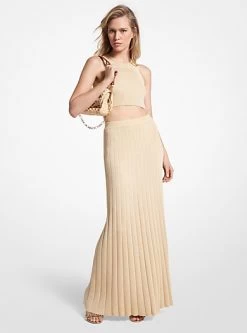 Knit with metallic threads for a lustrous finish, this floor-grazing ribbed skirt makes every hour golden. It looks especially chic when styled with the coordinating cropped tank top. Wear yours with heels to temper the sweeping hem.• Skirt