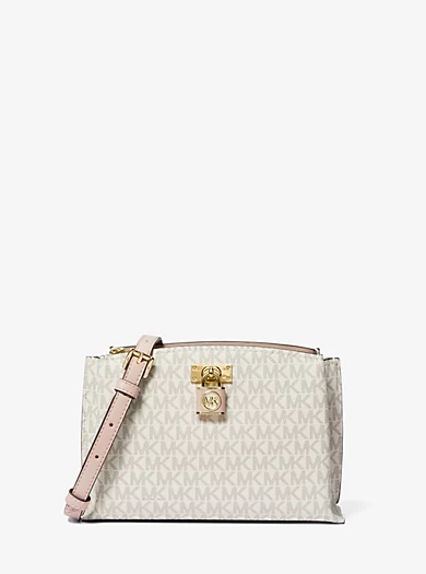 Our Signature print Ruby messenger is a minimalist design distinguished by a polished padlock charm for decorative appeal. Sized to fit everyday must-haves, it has a lined interior with a median zip pocket and a removable crossbody strap. Pair it with easygoing wardrobe essentials for a look that exudes effortless style.• Messenger bag